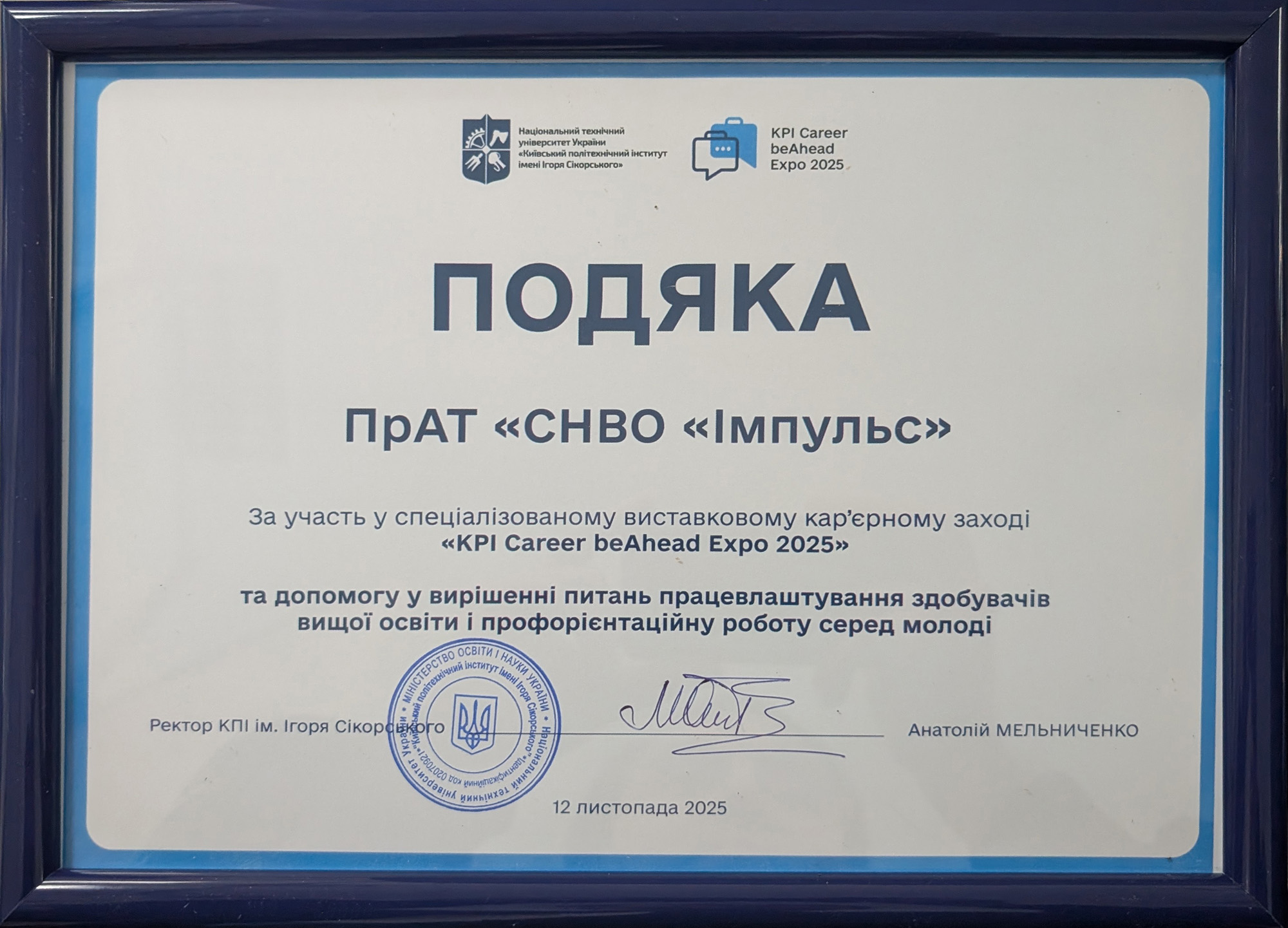 Представники ПрАТ «СНВО «Імпульс» взяли участь у KPI Career beAhead Expo 2025 – одному з наймасштабніших заходів для студентів та випускників Київського політехнічного інституту імені Ігоря Сікорського.