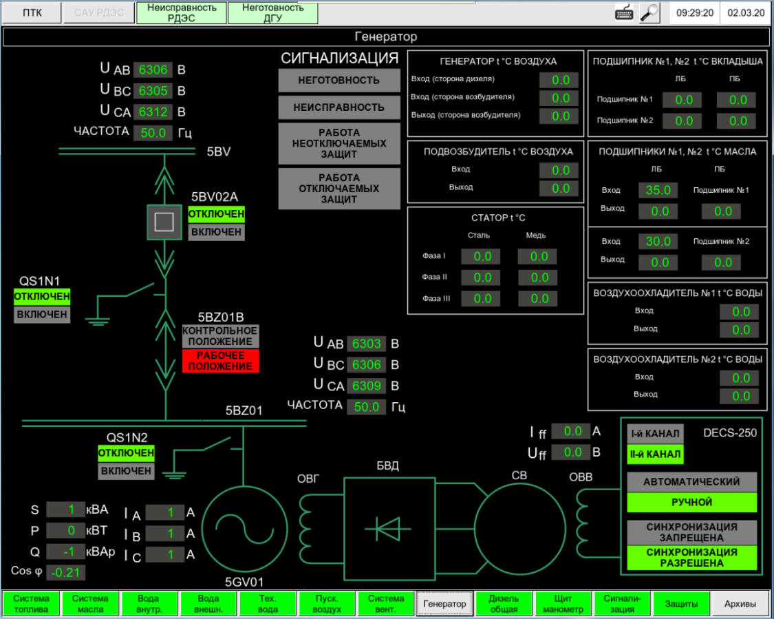САУ РДЕС спільно з іншими суміжними системами забезпечує керування пуском, підключенням до мережі та роботою на потужності дизель-генераторної установки (ДГУ), керування збудженням та захистом генератора, керування обладнанням власних потреб та допоміжним обладнанням.